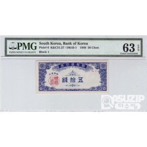 1949년 소액권 3종세트(5/10/ 50전) / PMG 63 NET/ 66 EPQ/ 64