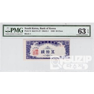 1949년 소액권 3종세트(5/10/ 50전) / PMG 63 NET/ 66 EPQ/ 64