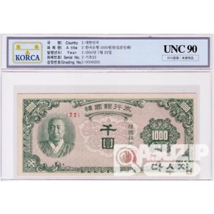 1950년 1000원권(한복)-일본인쇄 / UNC 90등급 - 미사용품