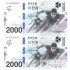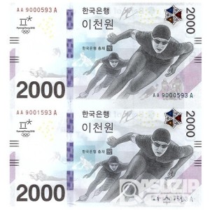 2018년 평창 동계올림픽대회 기념은행권 2000원권 2매 연결권/ AA 9000593 A