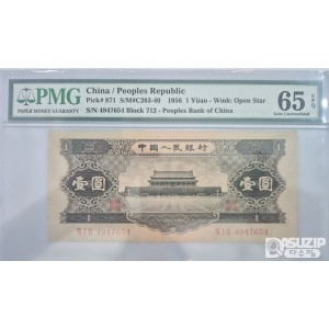 그레이딩 지폐: 1956년 인민은행 2차권 1위안 65등급(흑)