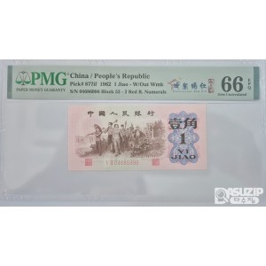 그레이딩 지폐: 1962년 인민은행 3차 1각 PMG 66등급