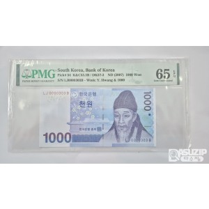 그레이딩 지폐: 3차 천원 0000303 PMG 65등급