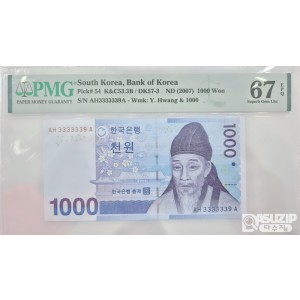 그레이딩 지폐: 3차 천원 준솔리드 PMG 67등급 3333339