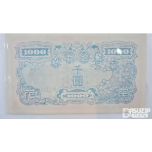 1950년 6월 25일 한국전쟁 발발 이후 미발행권 신 1,000원 미품