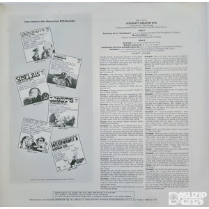 슈베르트의 '미완성 교향곡', '세레나데', '군대 행진곡', '악흥의 순간 3번', '로자문데: 간주곡과 발레 음악 2번', '아베 마리아'가 수록되어 있습니다. 앨범 표지에는 RCA Red Seal이라는 레이블 정보와 ARL1-0114라는 앨범 번호가 기재되어 있습니다.