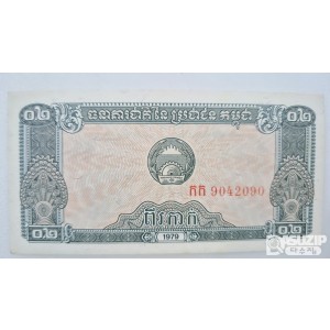 상단에는 크메르어로 '캄푸치아 인민의 국립은행'을 뜻하는 'ធនាគារជាតិនៃ ប្រជាជន កម្ពុជា'라는 글씨가 있습니다.