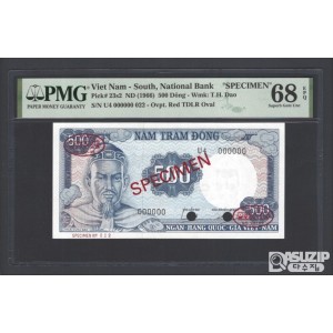 남베트남(베트남 공화국)의 500동 지폐 견본(SPECIMEN) 68등급(최고등급).