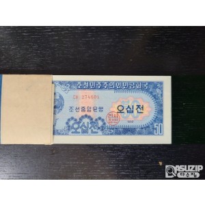 매우귀한 수집품인 1959년에 발행된 조선민주주의인민공화국(북한)의 50전 지폐 다발권
